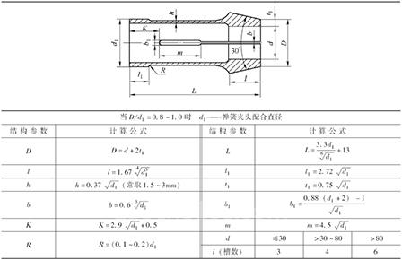 弹性夹头大都已经标准化,自行设计时各部分尺寸的设计可参考表 1 。 (本篇选自《机械加工特色操作及实用案例》第二章第三节(...