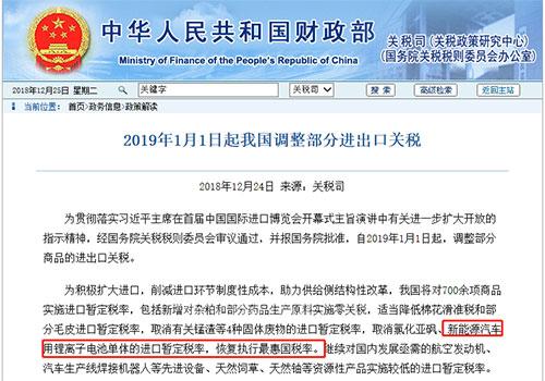 2019年,使用国外新能源汽车用锂离子电池成本将更高了? 2018年12月24日,国务院关税税则委员会发布《2019年进出口暂定税率等调...