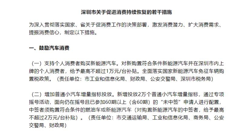 深圳增加2万个普通小汽车增量指标 个人购买新能源车给予补贴