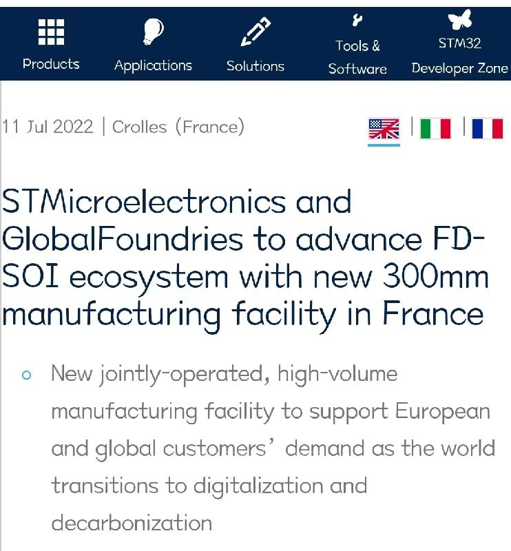 7月11日,意大利芯片制造商意法半导体(STM)和美国芯片制造商格芯(Global Foundries)宣布两家公司签订备忘录,将共同在法国建...