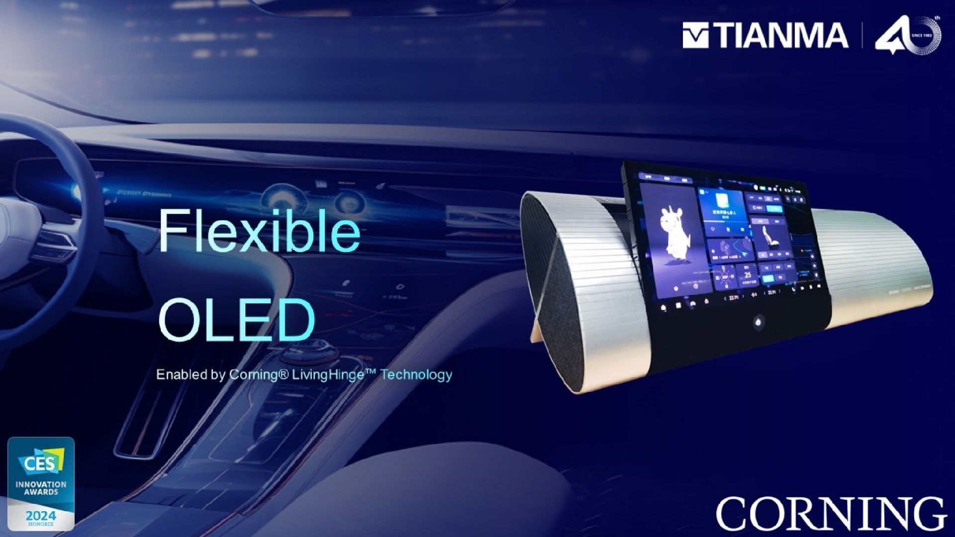 康宁屡获殊荣的LivingHinge™技术将应用于天马汽车座舱显示屏