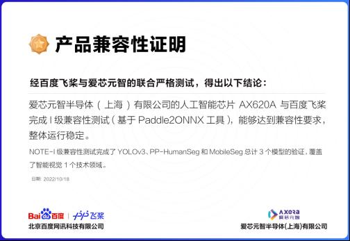 爱芯元智AX620A与百度飞桨完成I级兼容性测试 开源生态建设更进一步
