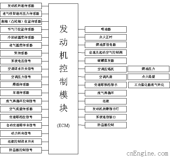 电控发动机是为发动机加入相当于计算机中CPU的电控模块(ElectronicControlModule),能够从发动机的各个不同功能部位采集信号,再通过互动系统(InteractSystem)进行反馈处理,以控制发动机完成各项工作。从实际使...
