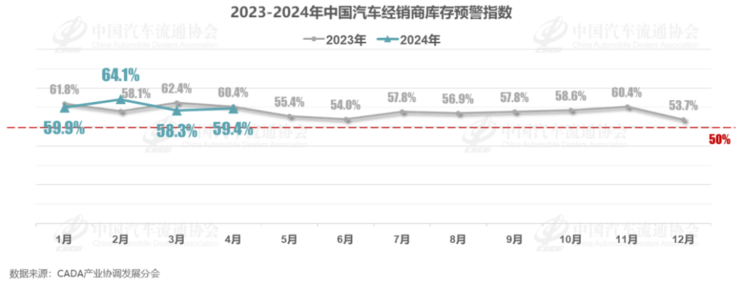 【库存指数】2024年4月中国汽车经销商库存预警指数为59.4%