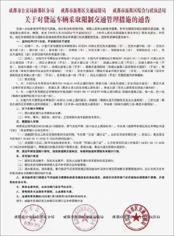 新能源货车不限行 成都新都区实施货运车辆限行管理措施