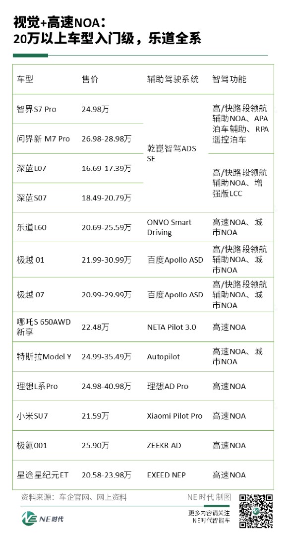 今年推的新车有着惊人的一致: 高速NOA上车的车型价格下探到20万元左右,甚至探索着15万元级别的空间; 视觉融合方案在高速NOA智...