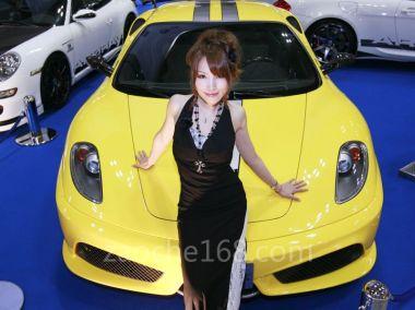 ,模特在日本东京特别进口车展上展示一辆法拉利跑车。当日,为期三天的 2009 年东京特别进口车展在东京国际展览中心开幕,来自日...