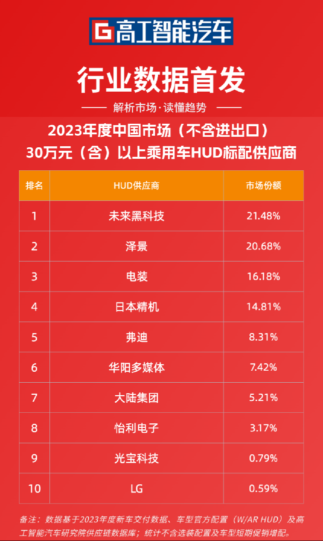近期,高工智能汽车研究院发布“2023年度中国市场(不含进出口)30万元(含)以上乘用车HUD标配供应商”排行榜,FUTUR...