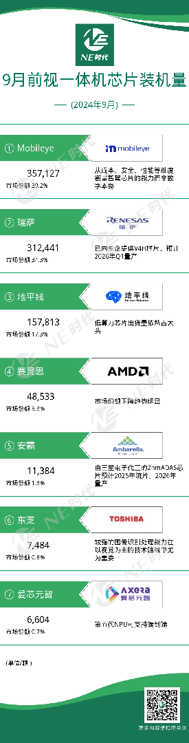 NE时代根据新能源乘用车终端数据统计,2024年9月中国乘用车前视一体机配套装机量为90.8万套。 ■前视一体机供应商装机量TOP10...