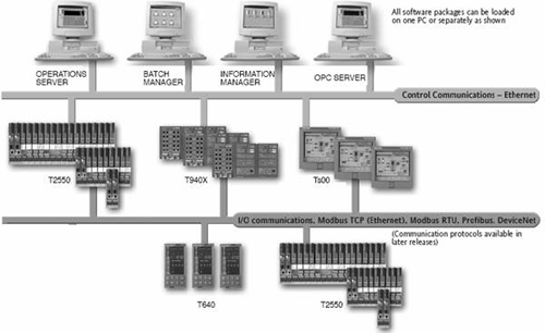 | 控制处理机(T940和T2550)的CPU采用32位的Pentium芯片,可实现连续量、顺序量和梯形逻辑控制功能。T940 过程控制器关键性能: |
