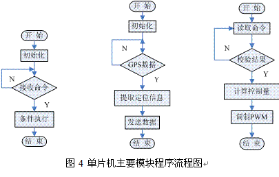 本系统软件分为两个部分,一部分是单片机控制软件,在Keil C51环境下开发,采用模块式结构设计,包括控制模块、采集模块等,主要模块流程图如图4所示。