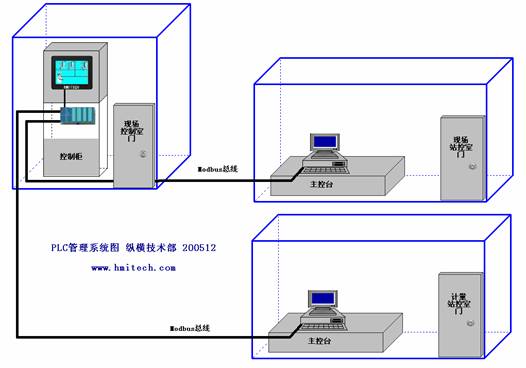 PLC在集散控制系统中应用,主控室与现场通过MODBUS通讯,对现场进行远程监空。