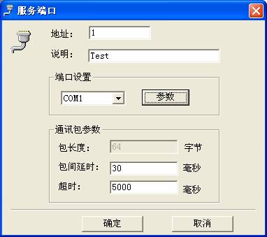 注意串口参数要与服务器端指定的串口参数一致,否则将无法通信。