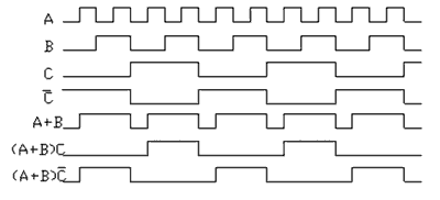 由14级串行二进制计数/分配器CD4020B构成分频电路,分频信号来自SG3525A的振荡器输出端引脚4。图4中的A、B、C分别代表振荡器脉冲经8、9、10级分频后的波形,其频率分别为fA=fOSC/28, fB=fOSC/29, fC=fOSC/210。分相电路由单片两输入端四与非门CD4011BC及外围器件组成,将信号ABC逻辑组合成逆变桥所需要的驱动脉冲(A+B)C与(A+B)C信号。该驱动信号具有共同死区,信号频率约为50Hz。