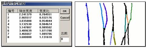 ⑸ 累加子图像细丝根数1;计算子图像平均宽度;改变子图像灰度值,并将该子图像复制到原图相应位置。