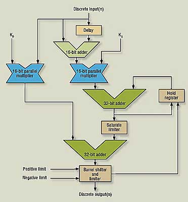 将这个表达式转换到离散时间域就可以产生一组定义ASIC实现的微分方程:
