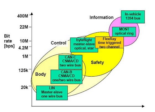 FlexRay车载网络标准已经成为同类产品的基准,将在未来很多年内,引导整个汽车电子">汽车电子产品控制结构的发展方向。FlexRay是继CAN 和LIN之后的最新研发成果,可以有效管理多重安全和舒适功能:譬如,FlexRay适用于线控操作(X-by-Wire)。