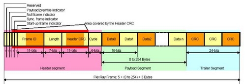 FlexRay使用的通信帧有三个帧段。(见图7)