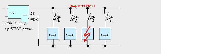 特殊挑战是在一个24V供应电路中, 如果发生故障的情况下, 因为没有预先的保护, 在很小的部分负载发生故障或短路的情况下, 会导致整个供应电路的故障. 因此快速诊断元件的引入就成为一个非常重要的部件, 以避免在部分感性和容性负载在有高冲击电流的情况下不会导致整个24V电源供应出现问题.