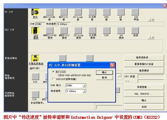 图片中“传送速度”波特率需要和Information Dsigner 中设置的COM2(RS232)