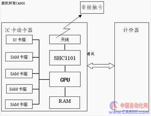 读卡器的通讯口用于接受计价器的命令,根据计价器的命令对IC 卡进行操作。