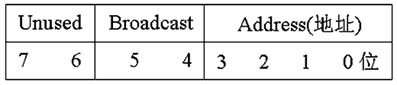 其中位5是广播位。选择是否将这报文以广播方式发送给总线上的所有驱动器,位0~4是驱动器总线地址。