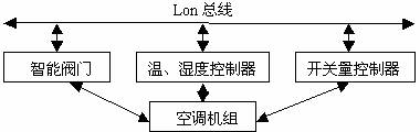 其工作原理为:温、湿度控制器测得温度和湿度后,通过运算获得阀门的调节输出。该输出通过Lon网络送到智能阀,产生相应的阀门开度。智能阀的数量与空调系统结构有关。开关量控制器则用于启、停机组,监测空调状态及产生报警等。