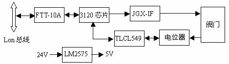 ⑴ 智能阀门:它直接连接在Lon网络上,通过Lon总线接收阀门开度命令,该命令以网络变量形式出现。智能阀门结构如图4所示。