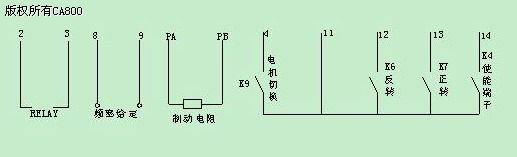 K6和K7分别控制电机正反转,K4为使能端;频率给定方式是PLC输出0--+10V的电压信号对应0—50HZ;并且KEB也是利用变频器自身的+15V源极开机方式.以上条件丹佛斯VLT2800全部可以满足并且能够达到客户所有要求的功能.