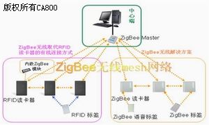 RFID射频识别技术以其识别速度快、价位低等优势广泛应用于物流仓储管理领域,它取代了条形码一次只能检验一箱货物的检验方式,兼有货物和叉车的区域定位优势,加快了货物仓储循环速度,大幅度提高的仓储企业的管理效率。然而RFID读卡器须采用RS232/485有线连接方式通信,给系统架设和维护都带来了极大的不便。为此,Helicomm基于ZigBee技术提出了无线物流仓储管理解决方案,包括对已有RFID物流管理系统的改造和新建ZigBee物流管理系统两大部分,以ZigBee模块自组的无线mesh网络为主要通讯媒介,大大缩短了系统架设周期,给终端客户提供了极大的方便