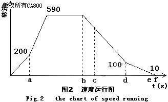 上料小车在整个运行过程中,要经过四个不同速度阶段:①起动低速运行200rpm/min阶段;②高速运行590rpm/min阶段;③减速运行100rpm/min阶段;④停车运行10rpm/min阶段。速度运行图如图2所示。