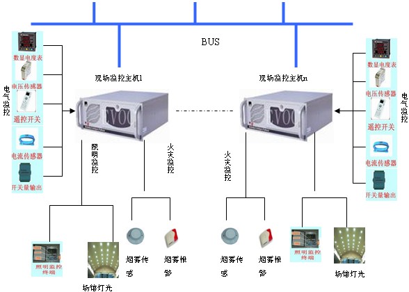 一、系统概述 2008年奥运会提出以“科技奥运”的主题,最主要的是体育场馆的建设,其中有一个十分重要的问题就是如何保证2008年奥运会场馆建设中公共安全系统的科学建设和合理设置,保障体育场馆在建设和使用过程中,最大限度地降低场馆危险事件的发生,或在有危险事件发生时最大限度地减少人员生命、财产及信息的损失。 体育场馆引用了楼宇自动化系统(BAS),整个系统是以计算机控制技术为基础,将电气设备监控,消防监控及安防监控系统集成一体化,利用一个总控室,完成空调、电气、给排水、照明、电梯、消防和保安监控功能,并且通过总控室,向场馆各种监控设备发出控制指令控制其运作,这样既可以节省监控设备所需空间和管理人员,同时又可以提高场馆内部设备管理水平。 二、监控项目构成、原理 1、 电气监控系统: 体育场馆的变配电系统,基本上都是10KV及以下的系统,采用直接数字控制器(DDC)进行监测,采用DDC控制器的系统,用于电压、电流、断路器的开关状态等,主要用来保护配电回路及用电设备免受漏电、过电流、过欠压和短路等故障的危害,防止电气火灾的发生。该系统采用集散控制方案,一台微型计算机可以监控多台数据集中控制器;现场监控器能够独立工作。 智能化变配电系统一般由计算机、通信网络、智能化开关和控制设备组成。它是由通信网络将变配电系统中带有通信接口的开关和控制设备连接起来,并与计算机相连,由工作人员在计算机上进行智能化管理和操作,从而实现集中数据采集和处理,集中进行监控,真正达到变配电系统的遥测、遥调、遥控和遥信。 2、照明监控系统: 采用计算机进行体育场馆的照明控制,能够对整个照明系统的工作状态进行实时监控,对每个回路、每个灯具的状态、故障进行监视,并能方便地进行各种照明场景模式的变换和更改,便于日常工作管理,减轻工作强度,确保照明的效果。智能照明控制系统采用模块化结构,能对灯具起到全面的保护控制和状态参数检测,这是采用常规控制方式所不能达到的。它采用软启动和软关断技术,限制电网电压浪涌,提高了灯具的使用寿命。 3、火灾报警系统: 自动火灾探测控制报警系统,总控制中心监视下属所有区域的消防报警和故障情况,在有紧急情况发生时,成为指挥和控制中心,以保证对火灾有最快、最有效的反应。根据总控制中心的功能要求,在总控制中心设有 GCC 中文图形命令中心一台,当有报警或故障发生时,通过预定之编程,在中文 GCC 屏幕上显示相应位置,可立即对故障或报警作出反应。同时还可通过对报警及故障事件历史记录的分析,制订出维护方案,以降低重大事故发生的可能性。另外,总控制中心还装有模拟显示屏,能迅速直观地显示各分区报警情况。 系统具有自动巡检功能,当故障或火警发生时,通过网络向总控制中心发出声光报警信号,总控制中心的中文 GCC 系统跳出具体的消防平面图,使值班人员迅速明确火警或故障的位置及原因。其主要功能是接收并执行网络主机的命令,对附属外设直接监测和控制,进行系统自检和向网络报告系统报警和故障信息;在网络通讯万一中断的情况下,自动转入本地工作状态,实行独立的监测和控制功能。 末端设备安置在模块箱或消防现场,主要包括:烟感探测器、温感探测器、手动报警器、探测模块、信号模块、控制模块、反馈模块、警铃、紧急电话、广播、水流指示器和电话插孔等等。 三、系统框图: