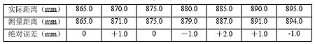 表1为常温下在880±15mm 测量范围的实验数据。经过大量测试实验,发现在测量范围(本系统为100mm~1.4m)内系统测量误差小于±3mm,并且测量稳定,重复精度高,受环境影响小。由此可见只须正确操作,排除人为使用不当造成的误差,系统的测试效果非常理想。