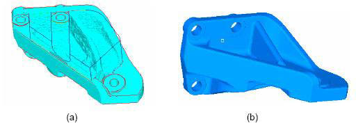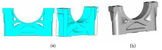 图2 发动机主轴承座拓扑优化模型和优化后的几何模型图