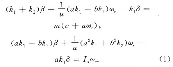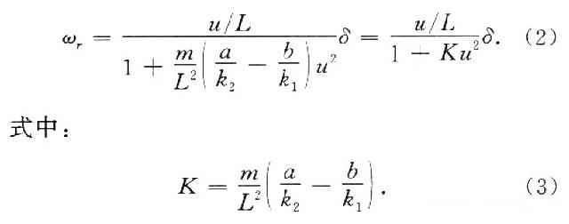 将这样一个线性二自由度汽车等速行驶时,前轮角阶跃输入下得到的稳态横摆角速度作为名义横摆角速度: