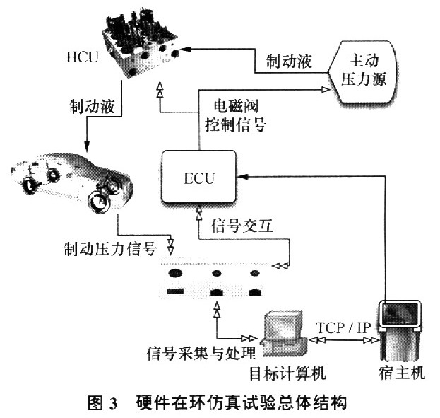 为了验证所设计的。ESP控制逻辑的有效性,通过MATLAB/Simulink/xPC实时仿真工具,建立了如图3所示的硬件在环仿真试验台。