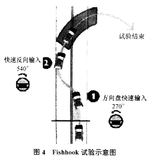 Fishhook试验方法是验证ESP控制效果的有效方式之一,其试验操作如图4所示。当汽车达到需要的速度之后,驾驶员将方向盘向一个方向急速转向270°,然后将汽车向相反方向急速回转540°。