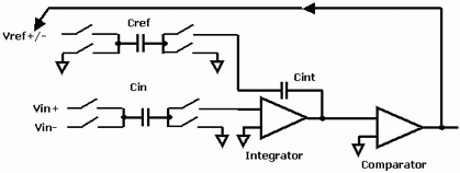 宏观上讲,电容传感器通常是通过将电容转换成电压、时间或者频率等另一种物理变量来进行分析。而在微观上,电容传感器已经长期用于汽车之中;微机械加速度传感器就是基于这个原理设计的。这些经常用来检测电荷转移。 一种用于探测电容的新方法采用改进后的Σ-Δ转换器的输入级来检测出未知的电容,并将其转换成数字信号。 这种方法使用了电容数字转换器(CDC),在本文中要与几个可以用于汽车的电容传感器原理一起阐述说明。文末也会概要说明另一种可选方法。 电容数字转换器 要形象描述CDC,我们必须对Σ-Δ 转换器原理作一番介绍。图1是Σ-Δ转换器的简图。