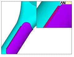 图2 焊接部位处理 图3 后桥CAE模型(负荷及约束)