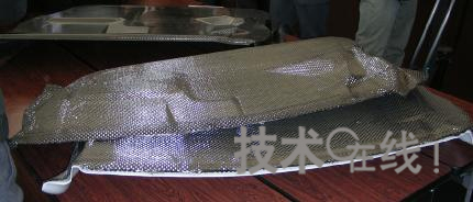 生产周期的缩短,在试制车门内板阶段基本已经实现,此次试制前地板之际,又挑战了新技术。即采用预制品包裹发泡材料(泡沫材料),通过浸渍环氧树脂实现了“三明治结构”。这样一来,便能够在减小碳纤维使用量的同时增大构件(增大截面积),从而使截面惯性矩和截面极惯性矩得以提高,制造出了耐弯曲和耐扭曲的部件。前地板试制品中,被称为侧梁的部分采用了三明治结构。泡沫材料的厚度为3~4cm左右,周围覆盖了CFRP。
