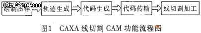 1 引言 近年来随着计算机技术的飞速发展及复杂模具的编程加工要求,计算机自动编程技术在快走丝电火花线切割机床上的应用日益普遍,快走丝线切割机床控制器的控制方式也从以电气靠模仿形控制和光电跟踪控制为主转变成以数字程序控制为主。目前快走丝线切割机床的控制器主要有两类,一种是集自动编程与数控加工于一体的计算机控制系统;另一种则是不具有自动编程功能的单板机控制系统。其中单板机控制器式线切割机床因机床价格低廉及可维修性好等原因,在模具生产企业及各职业院校中得到了广泛应用。然而由于单板机控制器式线切割机床不具备自动编程功能,因而在操作中需要加工人员进行手工编程及键盘输人程序,从而导致在加工中容易出现编程错误及程序输人错误等问题。为了提高编程的效率及程序输人的准确性,如何将CAM技术与单板机控制器式线切割机床进行有效结合成为急待解决的一个问题。下面笔者以CAXA线切割软件与宁波海曙富茂DK7735机床的HS98Z单板机为例,说明如何通过CAXA软件与线切割单板机联机实现CAD/CAM化改造。 2 基本思路 要在单板机控制器式线切割机床上实现CAD/CAM化改造,需要解决的问题主要有两个:一是需要一套CAM软件以解决绘图及自动编程的问题;第二是需要将计算机与线切割控制器进行联机通讯,从而解决加工程序的输人问题。CAXA线切割软件是以CAXA公司的主要CAD软件电子图板为平台的二维CAM软件,具有CAXA电子图板所有的绘图功能并在图形方面增加了花键、位图矢量化及轮廓文字功能,加工方面则具有轨迹操作模块、代码生成模块、代码传输与后置处理模块等。宁波海曙富茂DK7735机床的HS98Z单板机配置有一个15针的电报头接口,因此我们可以利用CAXA软件的CAD功能绘制加工图样,然后利用轨迹操作模块与代码生成模块自动生成数控加工代码,最后利用其代码传输功能将数控代码通过通信电缆直接从计算机传输到线切割机床上进行加工,从而解决键盘输人的繁琐和易出错等问题,节约键盘输人程序和检查程序的时间,达到提高生产效率和加工质量的目的。其具体流程如图1所示。