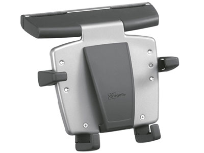 可用4个扶手来固定便携式DVD播放器,左右两个扶手的距离在18.5~27cm之间,有上、中、下3个等级调节可供调节。“就算是B5尺寸的笔记本电脑也能很好地支持”。此外还采用了倾斜机构。据说在中央采用弹簧构造,可以承受汽车启动和行驶时带来的振动。