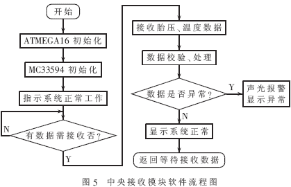 针对汽车胎压监测系统的硬件设计,其软件设计分为胎压监测和中央接收两部分。