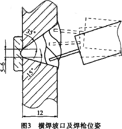 b. 横焊。坡口选用不对称“v”型坡口,具体坡口形式及尺寸如图3 所示。焊前需处理坡口表面。
