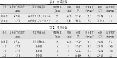 立焊打底时焊枪垂直于工件mm 左右上方,加摆后焊丝靠两边坡口1~2mm,第二道盖面,焊枪垂直上调5~8mm,摆动幅度适当调大。立焊时各参数如表1所示。