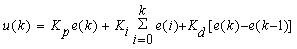 为便于在计算机中实现PID控制,当采样信号足够小时,用求和代替积分,用向后差分代替微分,将PID控制方程: