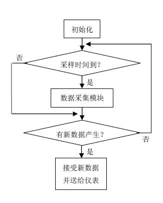 本系统软件部分由检测主程序、驱动仪表程序和方向盘等开关量输入程序组成。检测主程序包括数据采集模块、CPLD 模块,并且分配给仪表和开关量输入不同的端口。在端口的初始化中将所有初始状态设置为0,通过软件的定时器扫描,各端口的状态实时的传给主程序,其主程序流程图如图5 所示。