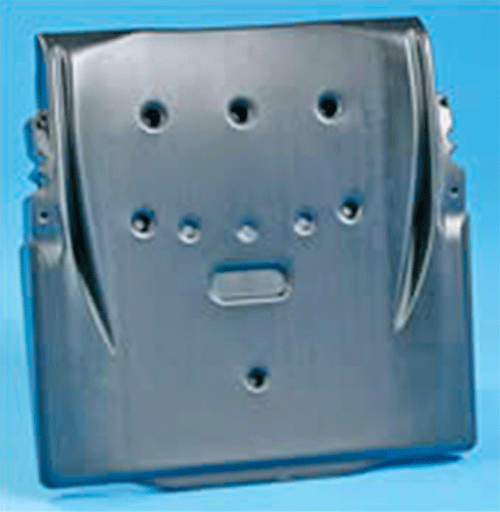 尽管没有获得最终的胜利,用滑石粉填充PP吹塑成型的地板仍引起了人们的极大兴趣。该地板由Lear公司生产,采用嵌件成型,具有防滑TPO表面,这一2~3mm厚的TPO表皮是在吹塑成型片材之后注射成型的。该地板经特别处理,具有很多小孔以利于透气,而且在TPO与PP之间没有任何黏合剂。此外,该产品有加强筋,能承受250lb负荷,并装有活动的合叶以取放地板下的备胎。