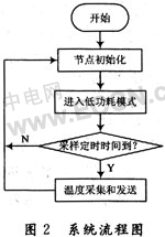 该系统采用星状无线网络系统,系统只有一个网络协调器和若干个RFD节点。网络协调器安装在有人值守的监控室,负责建立网络和管理网络,并显示当前整个网络的状况,且把收到的数据发送到计算机中。RFD负责安装在各个仓库中,负责采集温度值,然后定期或有中断时,把数据发送给网络协调器。监控人员在控制室通过显示器就可以对仓库温度进行监视,无须到仓库现场。