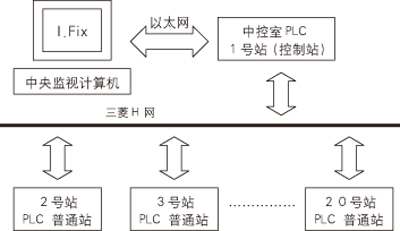 (2)网络形式:PLC之间采用MELSECNET H同轴电缆网。